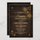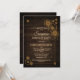 Invitación de cumpleaños sorpresa con estampado de madera rústica y un marco dorado geométrico único.