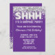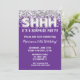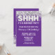 Invitación de fiesta de cumpleaños sorpresa para Purpurinas de plata morada para cualquier edad con escritura de escritura moderna y globos de Relieve metalizado divertidos.