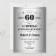 Invitación a la fiesta de aniversario de bodas sorpresa del 60 aniversario. Diseño simple de estilo retro en falso foil plateado y negro. Cuenta con fuente de tipografía elegante. ¡Salud por 60 años! Puede ser personalizado para cualquier año.