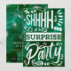 ¡Invitación a la fiesta de cumpleaños sorpresa Retro Esmeralda Verde Shh! Con efecto de acuarela digital.