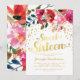 Invitación Fiesta de cumpleaños Sweet 16 | Brillo dorado flor