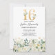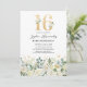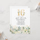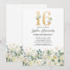 Establece el tono para una celebración memorable con nuestras invitaciones de cumpleaños número 16. Con follaje verde rústico, flores de acuarela blancas elegantes y acentos dorados. Combinadas con una plantilla de texto de celebración de cumpleaños dieciséis chic que puedes personalizar, estas invitaciones son una mezcla perfecta de elegancia y encanto. ¡Prepárate para la fiesta de cumpleaños sweet sixteen definitiva!