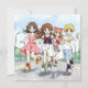 Invitaciones personalizadas a la fiesta de cumpleaños de los Chicas. Chicas de anime y patinaje de niños a través de los gráficos de la ciudad. Bonita fiesta de cumpleaños del chica de patinaje sobre ruedas.