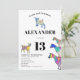 Una colección de cabras coloridas y lindas en rosa vibrante, púrpura, azul, naranja, amarillo y aqua. Una invitación de cumpleaños número 13 de animales de granja lindos con cabritos y cabras paradas sobre cabras. Esta divertida invitación de fiesta es fácil de personalizar para crear una invitación de fiesta única adecuada para niños y adultos amantes de las cabras. Ilustraciones originales de cabras psicodélicas coloridas por la artista Catherine Sweetman