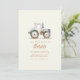 Celebre la próxima llegada con esta encantadora invitación a la ducha de bebé, que incluye un tractor de acuarela suave en la parte delantera, perfecto para un evento rústico o de temática agrícola. Debajo del tractor, todos los detalles esenciales del fiesta se muestran con gusto en una fuente elegante y fácil de leer. La parte trasera aporta un toque de fantasía, mostrando un agradable patrón de adorables animales de granja acuáticos que harán sonreír a todos los clientes. Perfecto para una cálida e invitante celebración, esta invitación es una manera dulce de reunir a sus seres queridos para un día memorable.