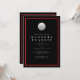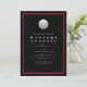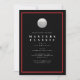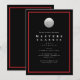 Invitación elegante de golf con fondo negro, marco rojo y una pelota de golf.