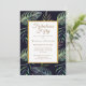 Elegante patrón de hojas tropicales de color verde agua en negro con marco dorado cincuenta y fabulosa invitación de fiesta de 50 años