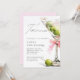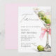 La invitación de cumpleaños elegante y moderna cuenta con un vaso de martini de acuarela con lazo rosa combinado con una tipografía moderna.