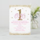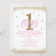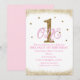 Invitación de fiesta de cumpleaños uno de niñas rosa y dorado.