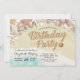 Invitación a la fiesta de cumpleaños - Summer Sandy Beach en texto de arena con Starfish y Seashells. Un diseño perfecto para tu gran día. ¡Todo el estilo de texto, colores, tamaños se pueden modificar para adaptarlo a sus necesidades!