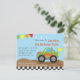 ¡Los niños pequeños adoran los monsteres truck enormes y frescos! ¡Lance tan a una fiesta de cumpleaños del monster truck para el muchacho del cumpleaños! Esta invitación colorida del fiesta del monster truck es perfecta para tal tema con su monster truck verde fresco con las decoraciones laterales ardientes y las ruedas enormes que compiten con a través del terreno rocoso. La invitación también se adorna con los elementos blancos y negros de la bandera que compiten con. Personalice fácilmente con los detalles del fiesta.