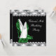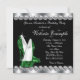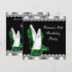 Invitación de cumpleaños elegante negra y verde de mujer con zapatos de tacón alto de brillo verde esmeralda en un fondo de diamantes. Esta hermosa invitación de cumpleaños negra y verde esmeralda se personaliza fácilmente para su evento agregando los detalles del evento, estilo de fuente, tamaño y color de la fuente, y redacción. También puede cambiar el color del fondo. Este es un diseño impreso sin brillo real, diamantes, etc.