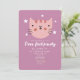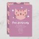Invitación Fiesta de cumpleaños verde rosado de gato lindo