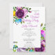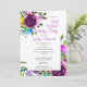 Las vibrantes flores moradas de color morado con brotes de azul, rosa y amarillo y verde aportan vida a este diseño floral para su "fiesta virtual de cumpleaños". Simplemente complete la plantilla proporcionada. Diseño compuesto por Holiday Hearts Designs.