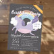 Compuesto por divertidos guiones cursivos y tipografía manuscrita sin previo; Todo en un fondo negro con un arcoiris colorido y unicornio morado.