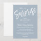 Crea una invitación de fiesta de sorpresa personalizada. Esta invitación para fiesta cuenta con una escritura de caligrafía espaciosa y hermosa con un fondo azul polvoriento. Puedes personalizarla fácilmente con tu propio texto y personalizarla a tu gusto. Tenga en cuenta: "Shhh..." y "Sorpresa" no se pueden editar.