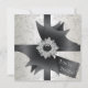 Invitación de fiesta y evento para cualquier ocasión en damasco blanco marfil con lazo negro y blanco en el centro con diamantes.