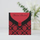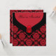 Elegante damasco rojo y negro con adorno de joyas rojas para invitación de fiesta y evento.