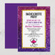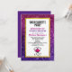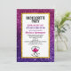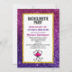 Fiesta de despedida de soltera con un diseño elegante y sofisticado. El fondo está compuesto por gemas de brillo rosa y morado. Ambiente trendy y femenino. Un rectángulo con un borde de lámina de oro falso superpuesto con su texto dentro. Una copa de vino dibujada a mano con vino de color rosa intenso debajo del texto.