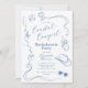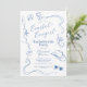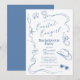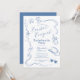 Celebra a la novia con estas elegantes invitaciones temáticas de "cowgirl costera" azules, dibujadas a mano y con estilo retro. Esta invitación de moda se puede personalizar con tus propios detalles. ¡Elige imprimirlas, recibirlas como descarga digital o ambas!
