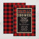 Invitaciones de Fiesta de Despedida de Soltera de Cuadro de Búfalo Rojo Negro Rústico.