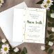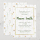 La combinación perfecta de femenino y moderno se encuentra en esta invitación de flores silvestres con marco dorado. Pequeñas y delicadas flores silvestres parecidas a margaritas rodean un marco dorado para un aspecto caprichoso y vintage que lo hace perfecto para su próximo evento. Los marcos dorados crean el borde perfecto para el texto en cursiva y tradicional de color verde hiedra. El resultado final es un aspecto lindo y primaveral que es perfecto para aquellos que buscan el sentimiento fresco y soleado de la primavera capturado en una invitación. ¡Esta invitación es imprescindible para su próximo baby shower, shower de novia o boda!