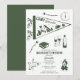 Un diseño lindo dibujado a mano con ilustraciones de tema de campamento de despedida de soltera. Este diseño de campamento bach fin de semana en verde y blanco es ideal para fines de semana de glamping de despedida de soltera, fiestas de chicas de campamento de despedida de soltera en destinos de montaña, bosque o lago.