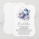 Celebra a la futura novia con esta elegante invitación de té de boda boho, que presenta flores azules pintadas a mano con acuarela y una encantadora ilustración de tetera y taza de té vintage. Los tonos pastel suaves y las flores silvestres del jardín traen un ambiente suave y romántico, perfecto para una reunión serena de té por la tarde con amigos y seres queridos. Ideal para celebraciones de boda de primavera y verano, fiestas de jardín o eventos de té vintage. Totalmente personalizable con los detalles de su evento, estilos de fuente y colores para adaptarse a su tema de boda único.