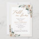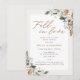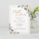 Invitaciones personalizadas para la fiesta de despedida de soltera con tema otoñal que presentan caligrafía de "enamorarse" con diseño rústico de acuarela floral y follaje de otoño.
