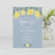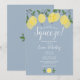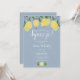 Con limones y follaje sobre un fondo azul polvoriento, esta elegante invitación botánica para una fiesta de despedida de soltera puede ser personalizada con la información de su evento especial y sus iniciales de monograma en el reverso. Diseñada por Thisisnotme©