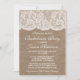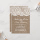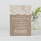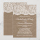 Esta invitación de boda para despedida de soltera de arpillera rústica y encaje blanco vintage hará el anuncio perfecto para cualquier futura novia. El diseño presenta un hermoso fondo con efecto de arpillera rústica con un borde con efecto de encaje blanco vintage romántico.