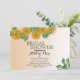 Este arte digital rústico de flores doradas y hojas está destacado en la parte delantera sobre un fondo de ombré dorado con información de la fiesta de despedida de soltera. La parte trasera presenta rayas horizontales en colores coincidentes. Rellene los campos de información personal, elimine el texto y/o haga clic en personalizar para seleccionar un color de letra, tamaño y estilo que prefiera.