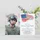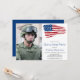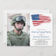 Invitaciones para fiesta de despedida de soldado con bandera estadounidense. Estas invitaciones modernas con bandera estadounidense son perfectas para una fiesta de despedida de un soldado, despedida para despliegues militares, celebración de bienvenida a casa para militares, graduación militar y jubilaciones militares. Personalice esta invitación con la foto de su soldado, evento, nombre y detalles de la fiesta.