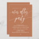Anuncia elegantemente tu felicidad eterna con nuestra tarjeta de invitación de celebración de fuga de la boda con tema moderno, tema marrón cobrizo, "Fiesta Feliz para Siempre". Diseñada para parejas que continúan su historia de amor, esta invitación logra un equilibrio perfecto de sofisticación y encanto, preparando el escenario para un evento inolvidable. Con un diseño de letra contemporáneo moderno, añade un toque de gracia atemporal a tu día especial. Diseñada por la talentosa TeeshaDerrick, esta invitación es una expresión elegante de tu amor duradero.