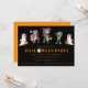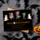 Invite a sus amigos a su fiesta de cumpleaños de disfraces de halloween con estilo , con esta impresionante invitación de halloween que incluye monstruos espeluznantes con un fondo negro ideal para cualquier fiesta de disfraces.