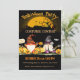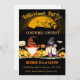 Invitación a la fiesta de disfraces de Halloween con dos deliciosos gnomos sentados entre lindas calabazas amigables.