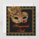Invitación a la fiesta de disfraces de Halloween con máscara veneciana negra y naranja