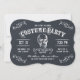 Diseño de la fiesta de invitados de la fiesta de disfraces de Halloween de estilo elegante de Guay con tipografía de máquina de escribir y escritura bordeada por adornos florales de desplazamiento con un ilustracion de cráneo vintage en el centro. Textura falsa de pizarra impresa en el fondo. Personalice el diseño con los detalles de su fiesta. Haga clic en Personalizar para cambiar fuentes, mover texto y crear su propio diseño único de invitación.