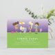 Este diseño cuenta con cuatro niños zombies, junto con un cerebro y una mano que se extiende desde el subsuelo, parados frente a un fondo de gradiente morado claro a oscuro. Los detalles de su fiesta se muestran en blanco sobre un fondo verde. El texto es completamente personalizable. Perfecto para el cumpleaños de la fiesta de Halloween. Gráficos ©Prettygrafikdesign