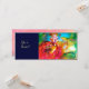 Personaje colorido, caprichoso y vibrante de máscara veneciana. Una hermosa y sofisticada mujer rubia está sentada con una rosa roja y una máscara de plumas en mano con brillantes telas doradas y fucsias de un disfraz de baile de máscaras barroco con plumas y un perro. Pintura en acuarela con colores brillantes en amarillo, azul, rosa, verde, destellos dorados y hoja de plata, inspirada en personajes de la Comedia del Arte (Commedia dell'Arte), Carnaval de Venecia y máscaras de plumas venecianas. Este diseño fresco y artístico es perfecto para bodas, ceremonias nupciales, fiestas de compromiso, dulces 16, fiestas de cumpleaños de quinceañera, fiestas de disfraces de Halloween, bailes de disfraces, compromisos románticos, anuncios de "save the date", fiestas de oficina, reuniones