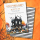 Bienvenido a tu fiesta de disfraces de Halloween con esta invitación divertida y festiva. Con un diseño sencillo en blanco y negro, la invitación incluye una mezcla de tipografía en negro y naranja tanto en fuentes ornamentales como en serif. En la parte inferior, una casa negra y embrujada resalta con brotes de naranjas de calabazas, jack-o-linternas y árboles, mientras que fantasmas y murciélagos juguetones completan la vibrante atmósfera. La fuente angustiada añade un toque vintage y granuloso a ese encanto antiguo. La parte posterior presenta rayas en blanco y negro, que se pueden personalizar cambiando el color de fondo o de banda para que coincidan con el estilo. Elegante Naranja blanco negro embrujó la invitación de fiesta de Halloween para Adultos Fantasmas Rayas de Barras. Disponible en forma de invitación impresa, o como una invitación digital descargable que puede enviar por correo electrónico o que ha impreso localmente.
