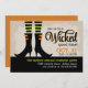 Invitar a amigos y familiares a celebrar al estilo espeluznante con esta encantadora invitación a la fiesta de disfraces de Halloween que presenta un tema malvado de brujas y un caprichoso diseño de botas de bruja. La lúgubre frase "Únete a nosotros por un buen momento inicuo" marca el tono para una noche de diversión, disfraces y golosinas. Personalice los detalles de su fiesta y elija entre invitaciones impresas o una cómoda descarga digital para una planificación rápida y sencilla.