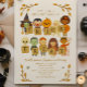 Cute Spooktacular Costume Kids Halloween Party Invitation Cute Halloween fiesta de invitación a fiesta de disfraces con ilustracion de niños disfrazados (murciélago, fantasma, vampiro, momia, monstruo). El texto de arriba dice "Únete a nosotros si te atreves a una fiesta de Halloween Spooktacular.