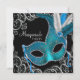 Invitación Fiesta de disfraz de máscara azul turquesa negro