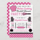 Las modernas invitaciones a las fiestas matrimoniales con decoración de cocina incluyen tipografía, accesorios y utensilios de cocina, y motivos de puntos polka en tonos negros, rosas y blancos.