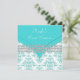 Invitación de cumpleaños número dieciséis de damasco blanco azul turquesa.