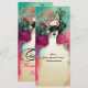 Dama elegante y caprichosa con una sofisticada máscara veneciana de plumas en colores vibrantes rosa, verde, fucsia, negro y blanco, inspirada en la Comedia del Arte (Commedia dell' Arte) y el Carnaval de Venecia, pintura en acuarela con pan de oro y plata. Fácil de personalizar con su propio texto para una boda, anuncio, RSVP, agradecimiento, despedida de soltera, fiestas de cumpleaños, despedida de soltero romántica, fiesta de máscaras de Año Nuevo, graduaciones, aniversarios, reuniones o cualquier otro evento que desee.
