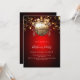 Una invitación para un Fiesta de Navidades. Fondo de degradado rojo. Decorada con una gran cosecha dorada que parece bauble y estrellas doradas. Personalice y agregue los detalles. Texto blanco.