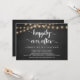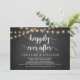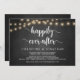 Hermosa celebración de la fiesta Felices para Siempre, Tarjeta de anuncio / invitación de boda huida, en pizarra de granja rústica, diseño de luces de cadena. Esto es perfecto para la recepción de su boda y la fiesta de celebración después de la boda. Agregue sus detalles en la fuente / letra coincidente.