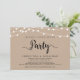 Hermosa fiesta de feliz para siempre, tarjeta de anuncio / invitación de boda Elopement, en diseño rústico de granja Kraft, luces de cadena. Esto es perfecto para la recepción de su boda y la fiesta de celebración después de la boda. Agregue sus detalles en fuente / letra coincidente.